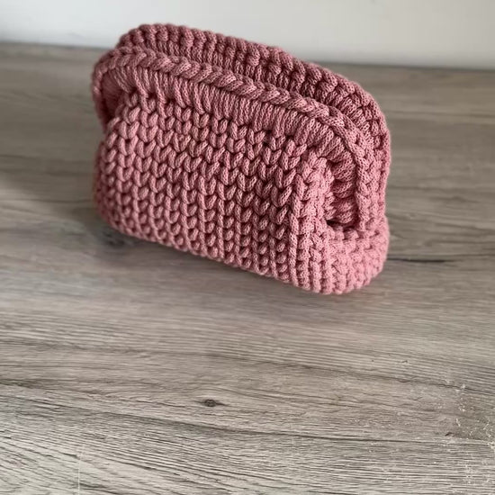 Diese stilvolle, handgehäkelte Clutch vereint zeitloses Design mit praktischer Funktionalität. Gefertigt aus dem hochwertigen 5 mm Bobbiny-Garn in einem sanften Roséton, ist sie nicht nur ein echter Hingucker, sondern auch nachhaltig und langlebig.