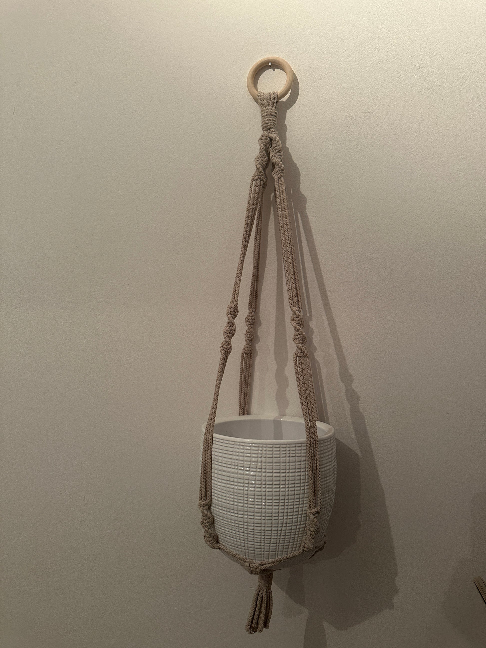 Mit unserer handgefertigten Blumenampel Lotte setzt du deine Pflanzen perfekt in Szene. Ob im Wohnzimmer, in der Küche oder auf dem Balkon – Lotte bringt frisches Grün auf elegante Weise in deine vier Wände.