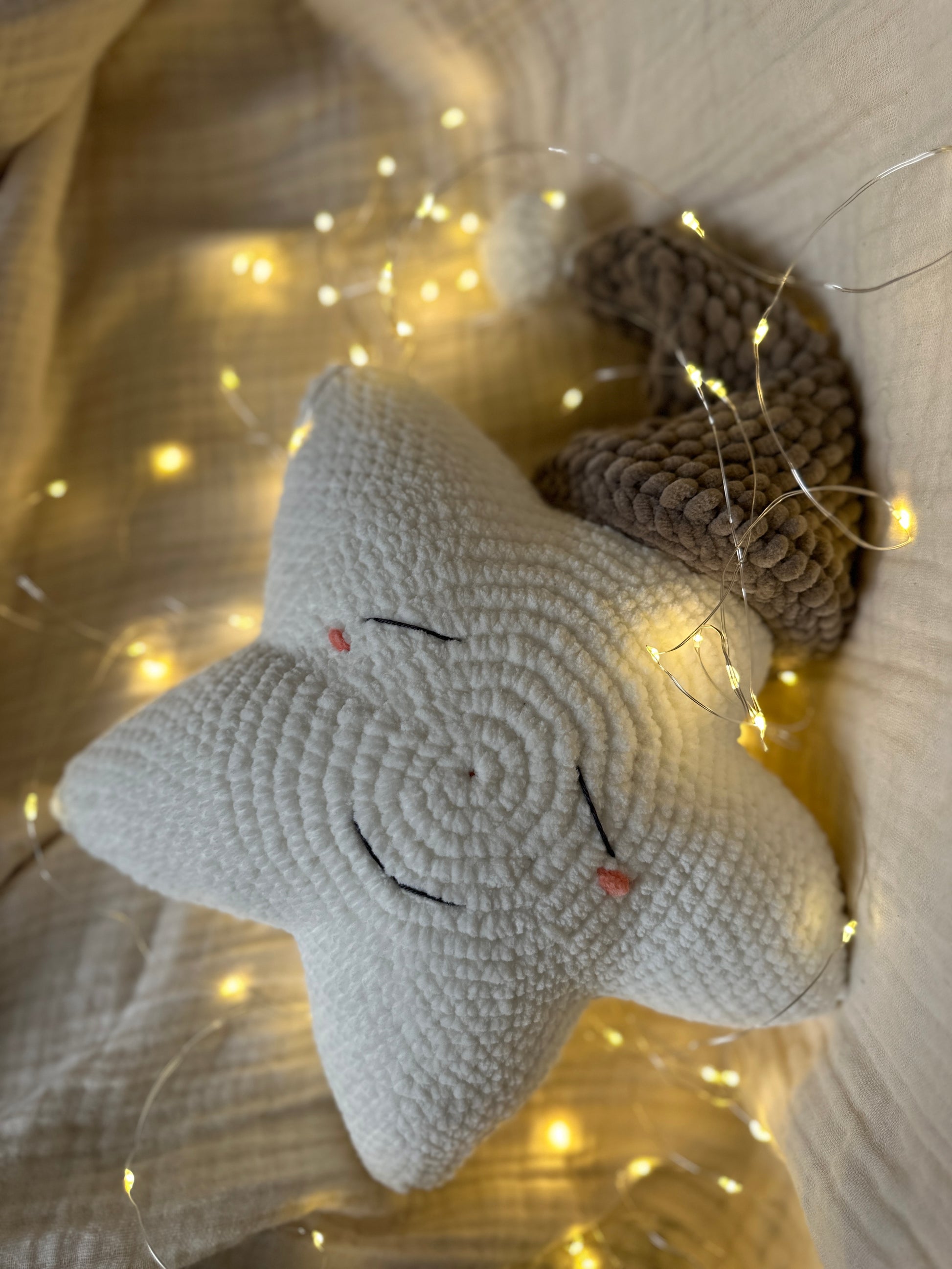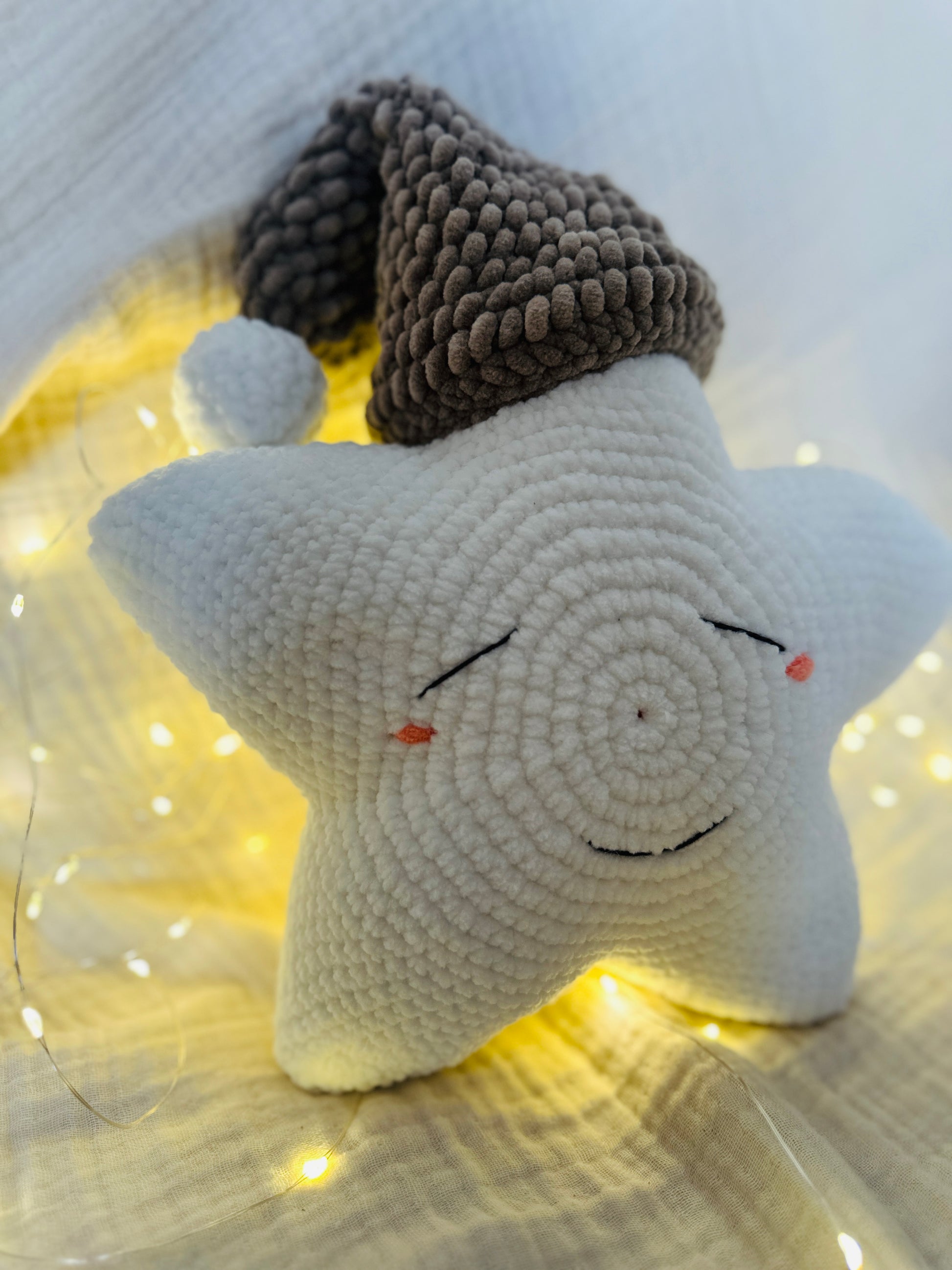 Luma schloss seine Äuglein, lächelte verträumt – und plopp! – wurde er von einer liebevollen Hand gehäkelt, mit ganz viel Herz, Flausch und Fantasie. Seitdem reist der kleine Schlummerstern von Zuhause zu Zuhause, bringt Geborgenheit, süße Träume und ein sanftes Licht ins Herz derer, die ihn umarmen.
