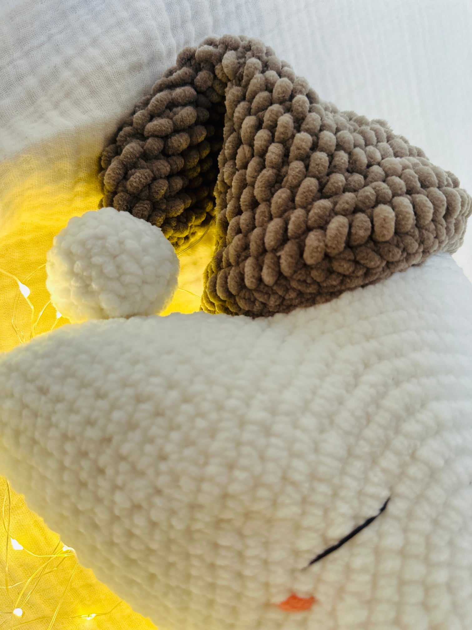 Mit seiner flauschigen Mütze und seinem verträumten Lächeln ist er der perfekte Begleiter für ruhige Nächte, kleine Auszeiten und magische Kuschelmomente.