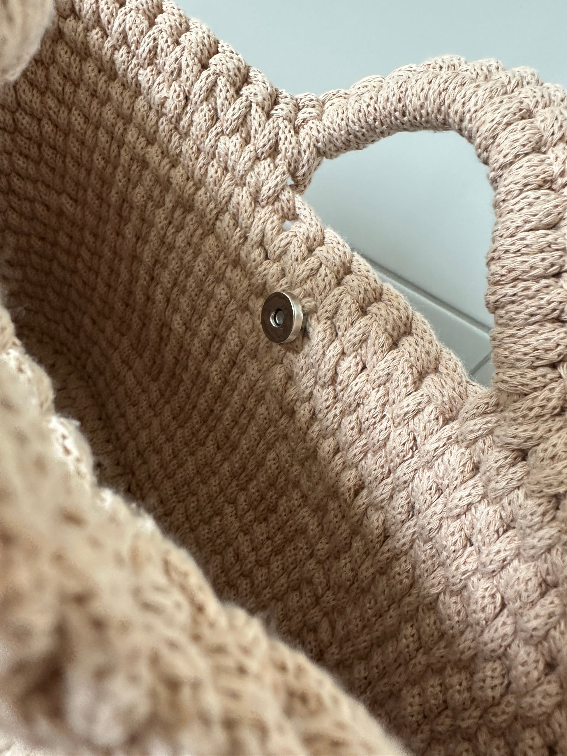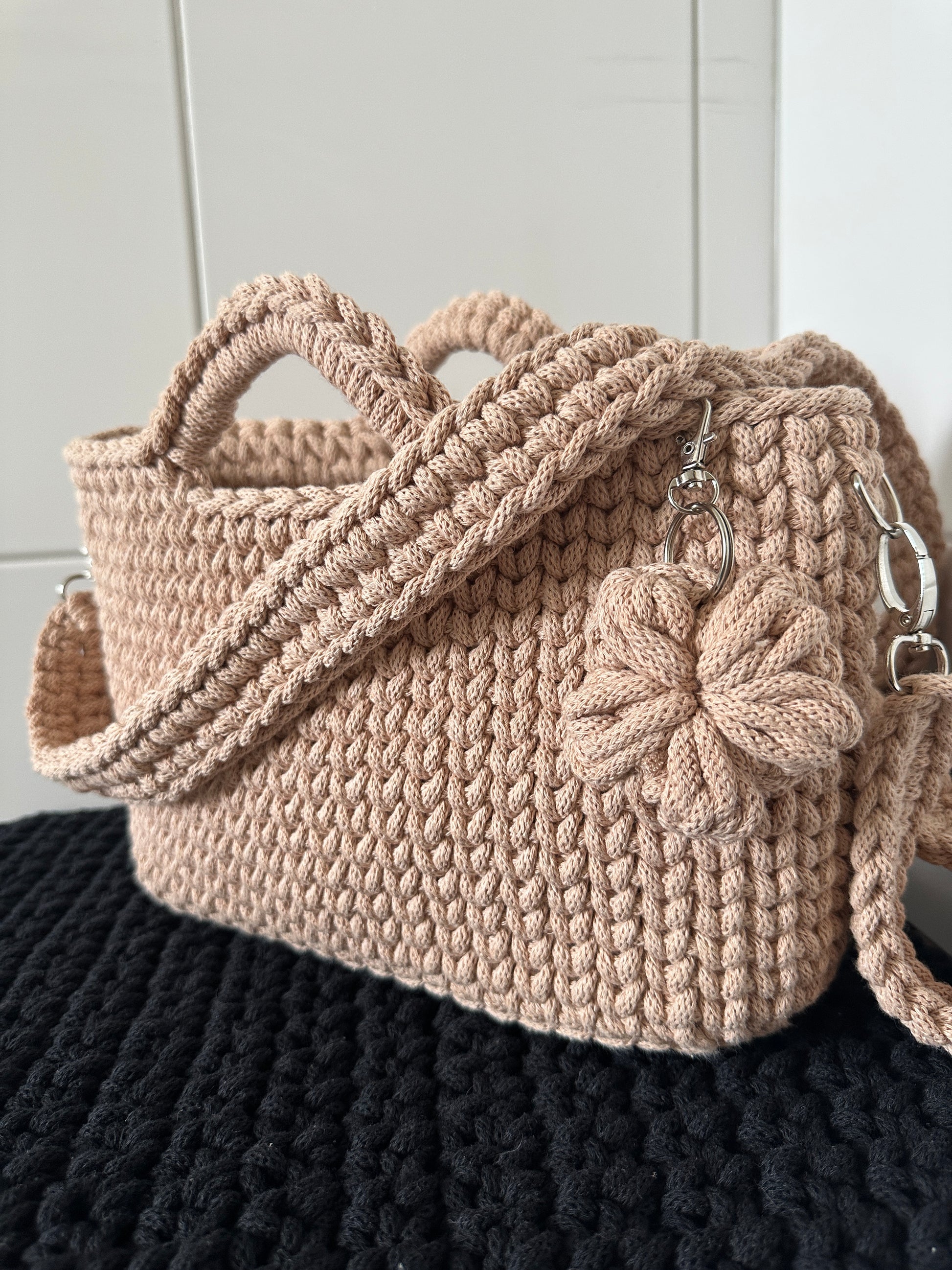 Diese handgefertigte Tasche besticht durch ihr stilvolles, modernes Design und wurde mit viel Liebe zum Detail gehäkelt in der Garn stärke 5mm. Gefertigt ist sie aus 100 % recyceltem Garn von Bobbiny, das nicht nur umweltfreundlich, sondern auch besonders robust und formstabil ist. Das dichte, strukturierte Maschenbild sorgt für eine elegante Optik und hohe Langlebigkeit.