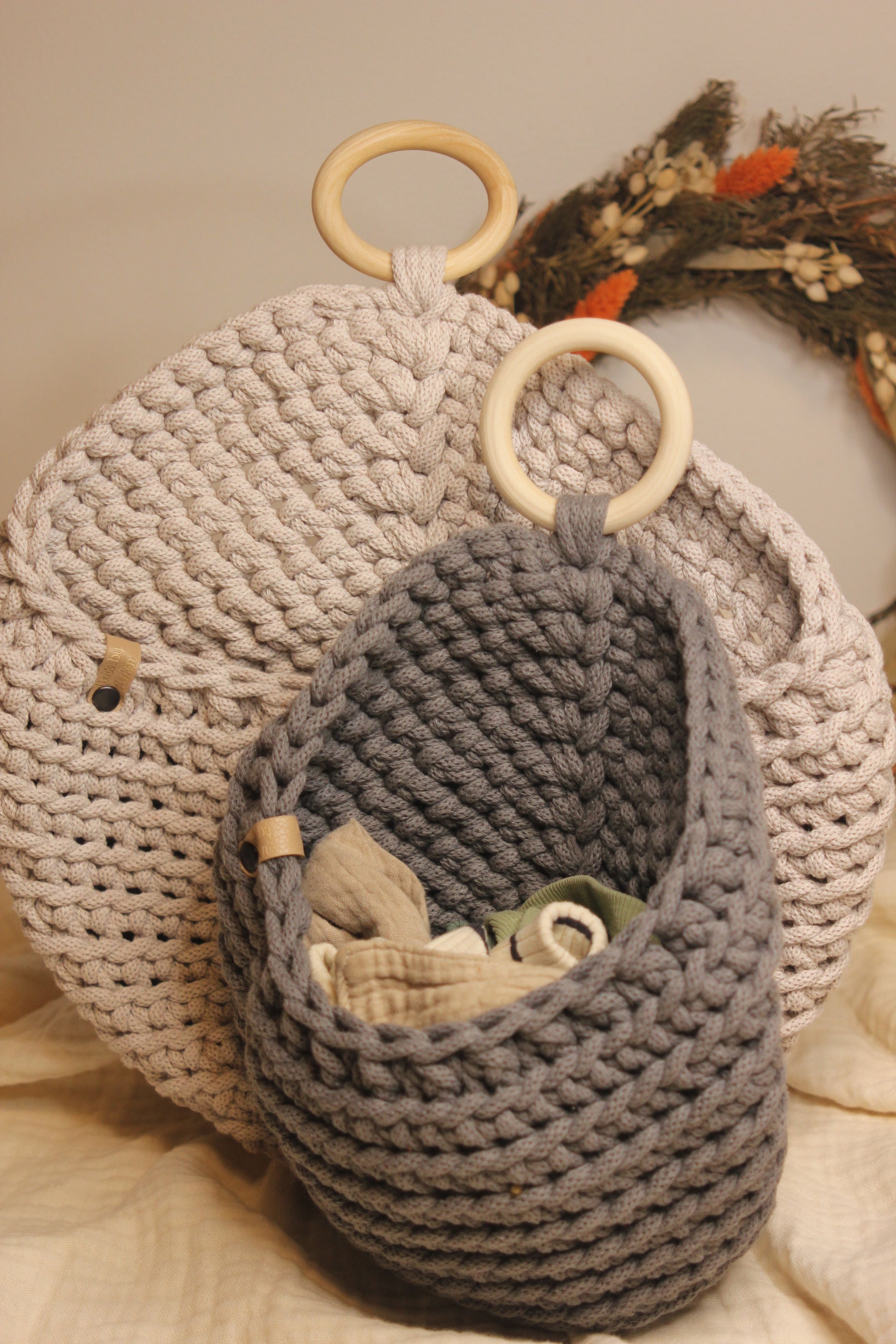 Zwei Hängekörbe in der Gr. S (Grau und Creme)